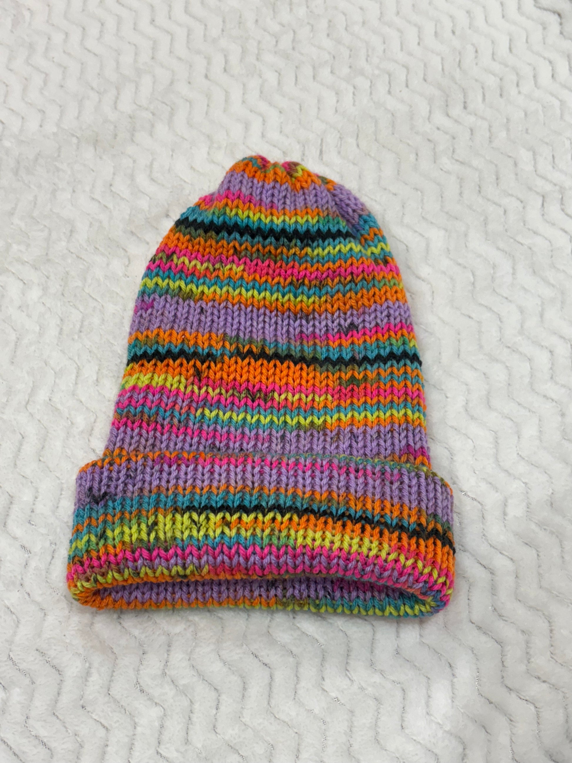 Measures 15″ unstretched, 20″ stretched, and 13″ from crown to edge with the brim unfolded. Can be worn slouchy or folded for a snug, cozy fit.