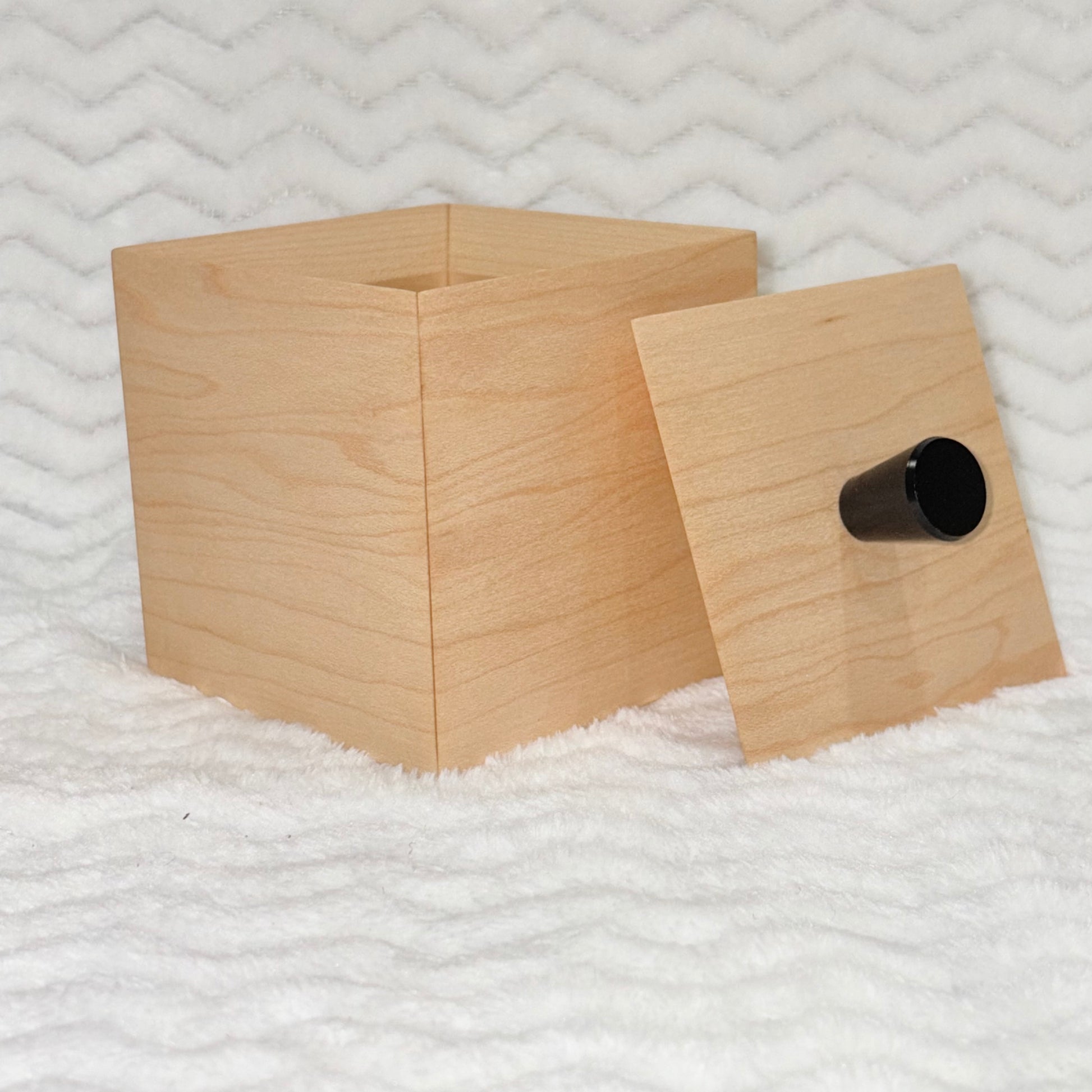Crafted from solid hard maple, this elegant keepsake box is perfect for holding jewelry, mementos, or small treasures. Each piece is crafted and finished to showcase the maple’s smooth grain and soft, natural luster.